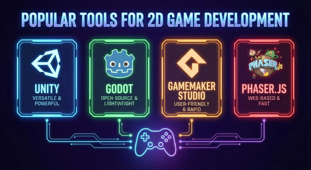 2D game development involves creating games that operate in a two-dimensional space—typically along the X and Y axes. Characters, environments, and objects move left-right, up-down, or diagonally, but without depth.
